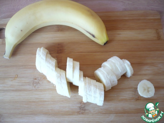 Тоже самое делаем и с бананами. Бананы очистите от кожуры и нарежьте кусочками. Выложите бананы на противень и уберите в морозилку на 1,5 - 2 часа.