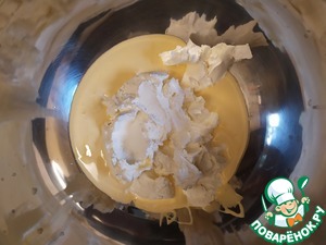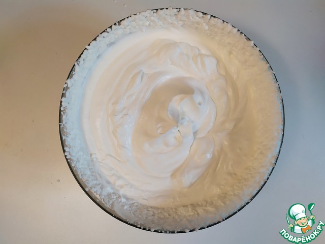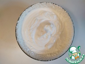 В отдельной посуде взбить сливки до жёстких пиков.