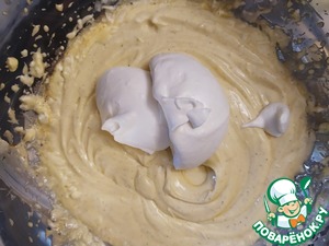 Добавить часть сливок к смеси. И спокойно перемешать. Потом ещё часть.