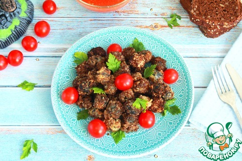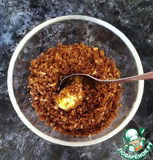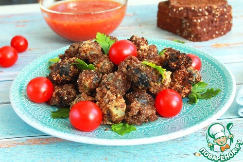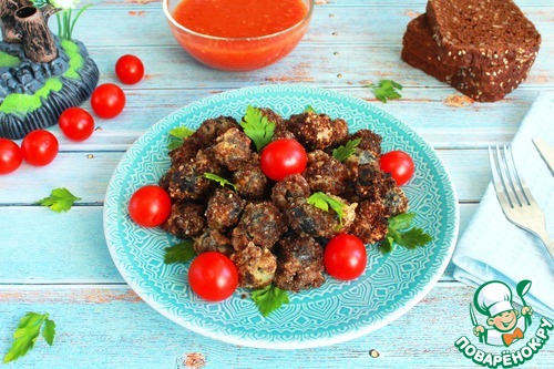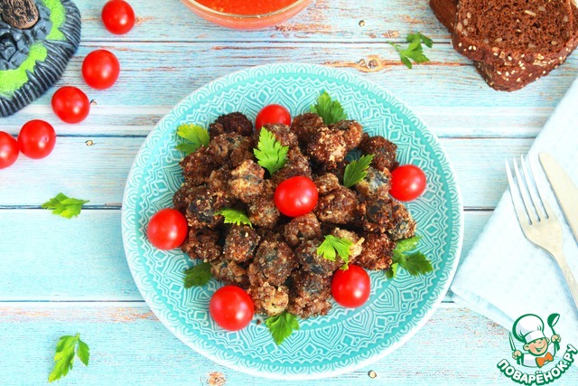 Затем, в панировочных сухарях. У меня домашние из ржаного хлеба.