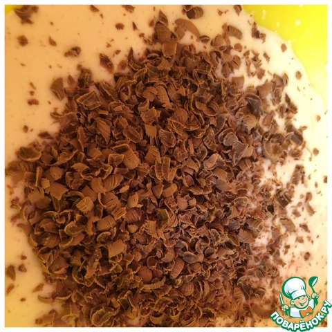 Выложить порезанную вишню и шоколад натереть на крупной тёрке. Перемешать.