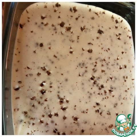 В емкость для заморозки вылить наше мороженое и накрыть пищевой плёнкой в контакт. Убрать в морозилку на 8-10 часов.