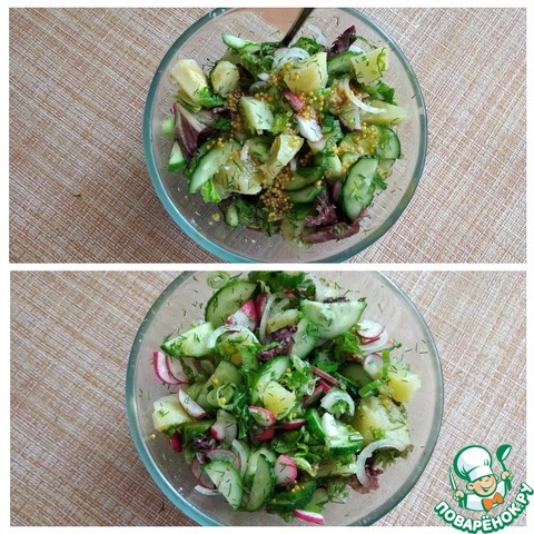Хрустящие овощи, пропитанная картошечка пикантной заправкой в салате - просто удовольствие и сплошная польза.
