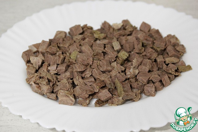Говядину нарезать на небольшие кубики. -