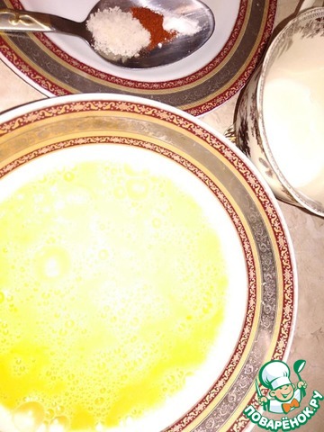 Подготовить соль, паприку, соду (можно по желанию щепотку черного молотого перца также). 4 столовые ложки молока. -
