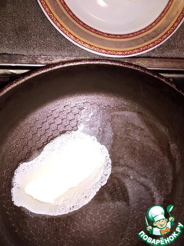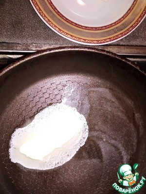 Выложить 1 столовую ложку сливочного масла и распустить его. -