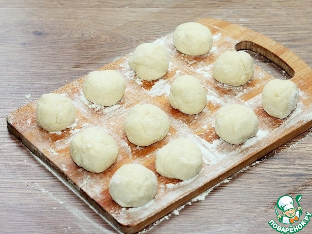 Если примять шарик стаканчиком, то донышко стакана, каждый раз макай в муку, формовка будет красивее.