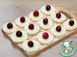 14. В середину лепешки положите по одной ягоде. Края теста заверните наверх, осторожно закрыв ягоды.