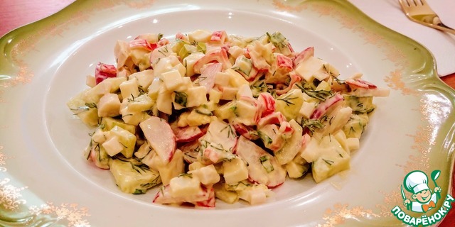 Свежий, легкий, сочный и очень вкусный салат с крабовыми палочками, редиской и огурцами, приготовление которого не займёт много времени и порадует в жаркие дни.
