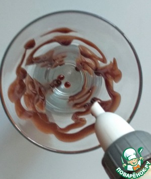 С помощью тонкой кондитерской насадки сделать шоколадные разводы на стаканах. Затем стаканы убрать в холодильник.