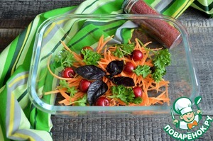 Морковь почистить, натереть на "корейской" тёрке или нарезать тонкой соломкой, лук перьями.