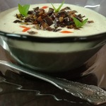 Этот суп стал вторым исключением из того, что я не ем холодные супы, просто не люблю. Суп покорил своим вкусом (Вика, спасибо тебе!!!) - баклажаны с легким ароматом чеснока, сливочный, с кисло-молочным вкусом, с ароматом зелени - он просто спасает в жару - надо пробовать!