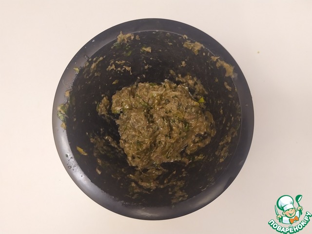 Растолчём до однородной массы. Добавим лимонный сок, 2 столовых ложки оливкового масла, соль, перец. И перемешаем.