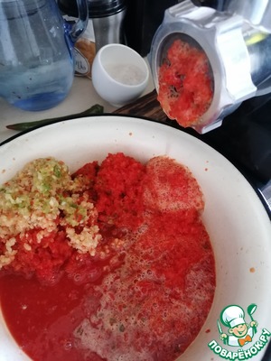 Сначала перекрутим овощи: перец, чеснок, жгучий перец, на мясорубке.