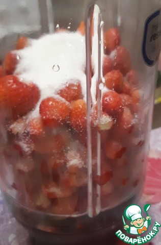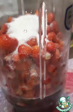 Переложить клубнику и мяту в блендер, засыпать сахаром