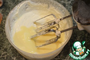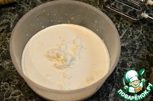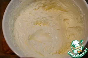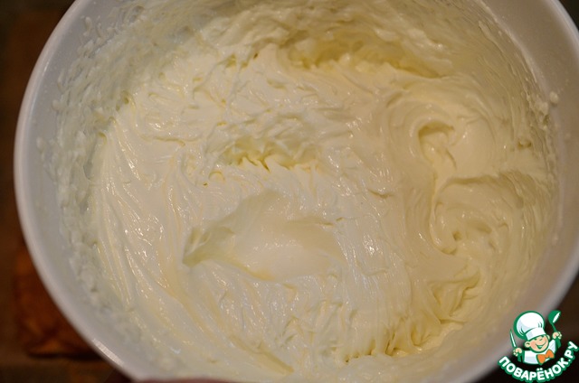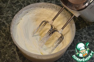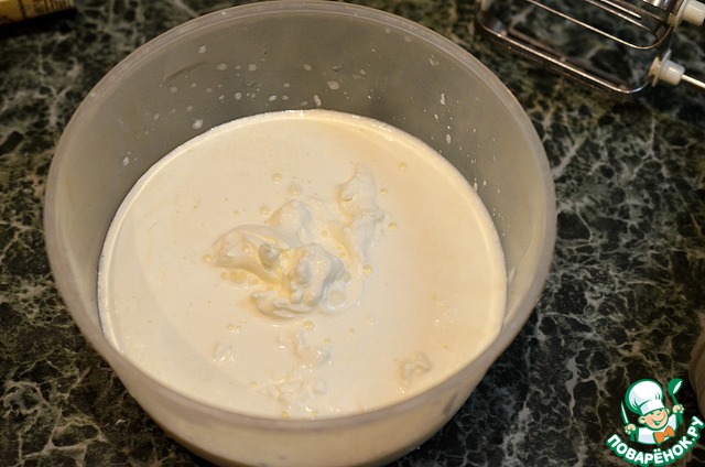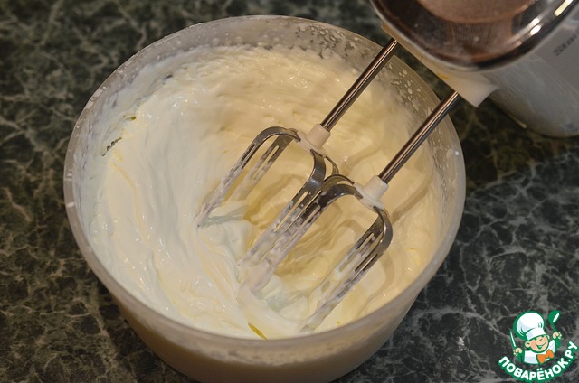 Взбейте сливки на средних оборотах миксера до мягких пиков.