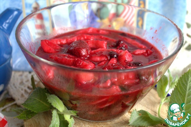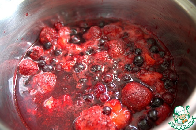 Соус очень простой: ягоды, какие есть в доме, закинуть в кастрюльку и поставить на маленький огонь. Ждём, когда ягоды дадут сок.