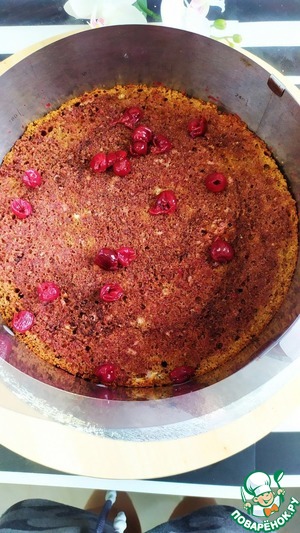 Сборка торта в кольце. Бисквит-крем-компоте -крем.