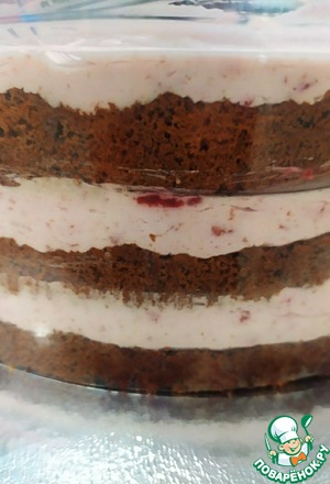 Далее опять бисквит-крем-компоте -крем- бисквит и крем. Убираем в холодильник на 2-3 часа.
