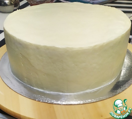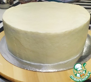 Обмазать торт кремом с помощью кондитерского мешка. Выровнять торт и отправить в холодильник на 2 часа (или на всю ночь).