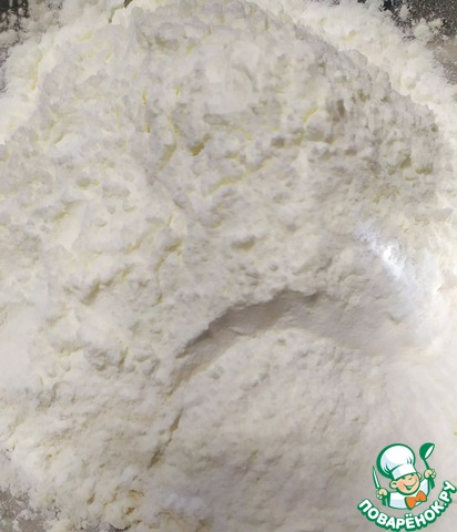 Муку с крахмалом и разрыхлителем дважды просеять вместе.