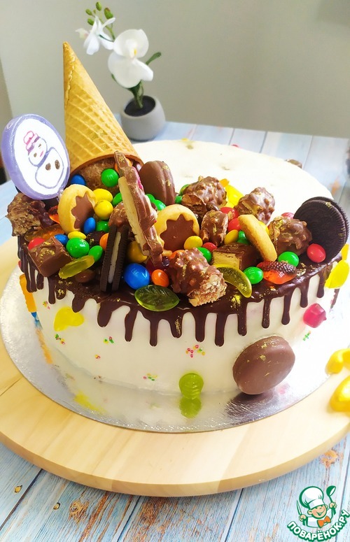 Охлажденный торт украсить по желанию! Я украсила шоколадом и печеньками.