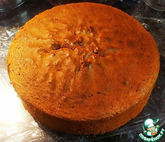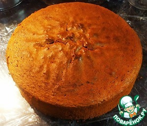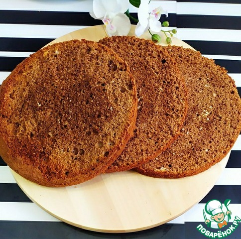 Бисквит разделить на 3 коржа толщиной 2 см.