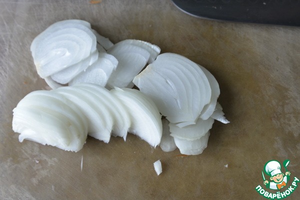 Лук чистим, режем полукольцами, если крупный, то полосками.