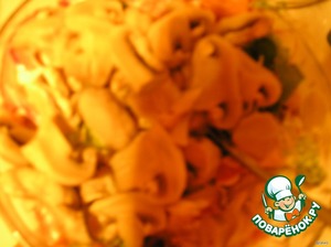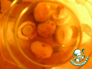 Грибочки отвариваем или доводим до готовности в микроволновке мощность 800, 3 минутки с водичкой)