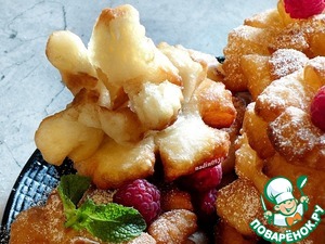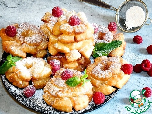 Остывшие пышки обильно посыпьте сахарной пудрой и подайте с ягодами или ягодным соусом.