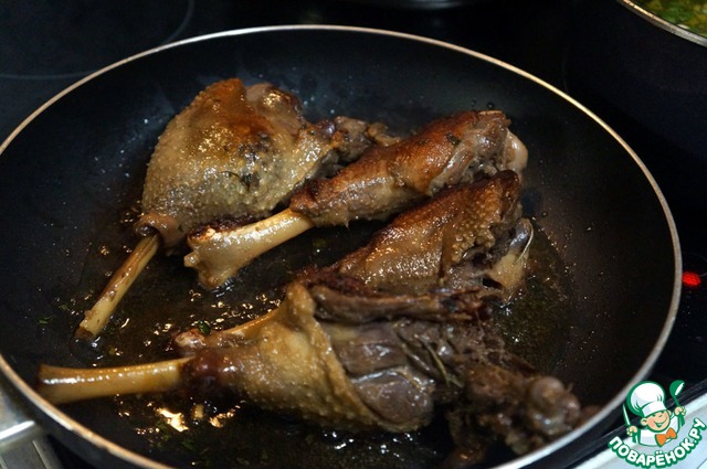 Когда ножки и крылья приготовятся, разогреть сковороду и обжарить птицу.