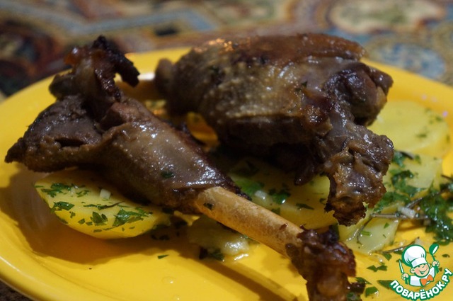Это блюдо мы с женой вдвоем смели в один присест. Несмотря на гарнир – казалось бы, такой же жирный, как и гусиная составляющая. Но вот что удивительно: и сами ножки, к которым я добавил еще и крылья, и гарнир из картофеля, приготовленного по классическому французскому рецепту – картофель сарладез, - не оставили впечатления жирного блюда. Базовый рецепт я взял у известного повара Ильи Лазерсона. Традиция французской крестьянской кухни предписывает в качестве основного ингредиента использовать ножки утиные. Так считается. На самом деле конфи готовят не только из утки – курица, гусь, даже ягненок. Собственно, конфи – не блюдо, а, скорее, способ приготовления.
