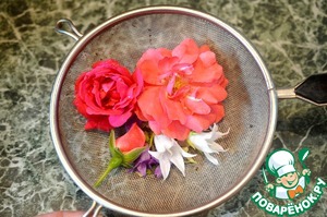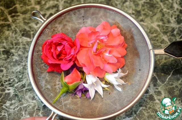 • Лепестки многих цветов съедобны: можно брать лепестки и бутоны роз, цветки липы, ноготки, фиалки, календулу. Промойте цветы. Небольшие бутоны можно оставить целыми.