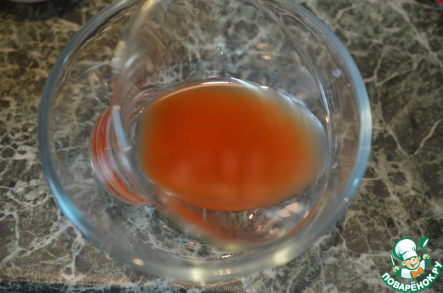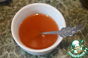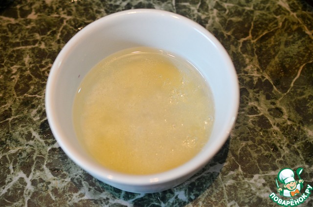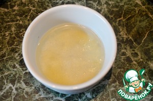1 чайную ложку желатина растворите в теплом бульоне (100 мл), затем протрите через сито, чтобы не осталось крупинок желатина.