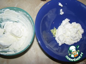 Творожную массу разделить на две равные части. Одну добавить к имбирю.