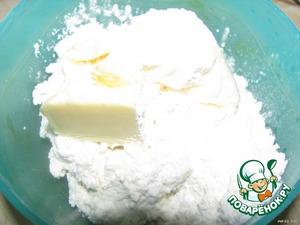 Творог (у меня был очень мягкий, практически без крупинок) растереть со сметаной, сахарной пудрой. Добавить мягкое сливочное масло. Растереть.