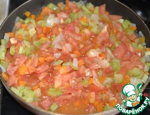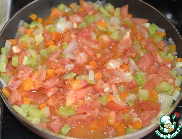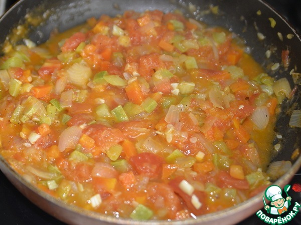 Кладём к овощам, тушим 15 минут на среднем огне.