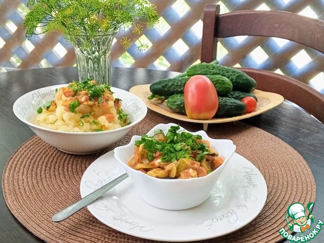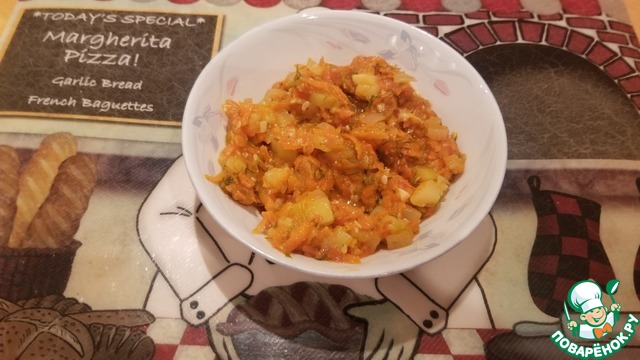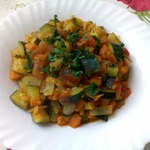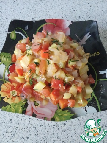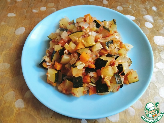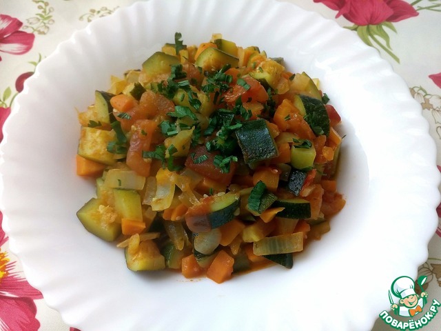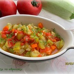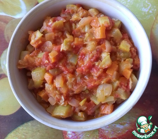 Не знаю, какое отношение имеет это блюдо к еврейской кухне, но именно с таким названием увидела этот рецепт в интернете. Заинтересовала нетривиальная технология приготовления, блюдо получается более диетическим, чем обычные тушёные кабачки. Возможно, кому-то пригодится, сейчас начинается активный сезон этого овоща. По-моему, это блюдо по консистенции похоже больше на икру.
