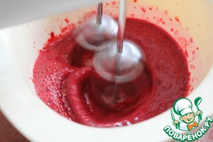 Взбиваем пюре с желатином, пока масса не станет светлее и не увеличится.