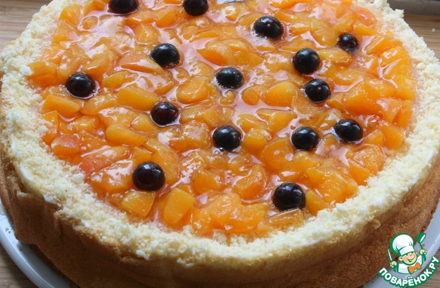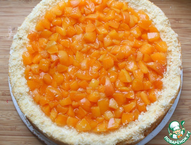 Выкладываем абрикосы на творожник, поливаем оставшимся желе и в холодильник, до полного застывания.