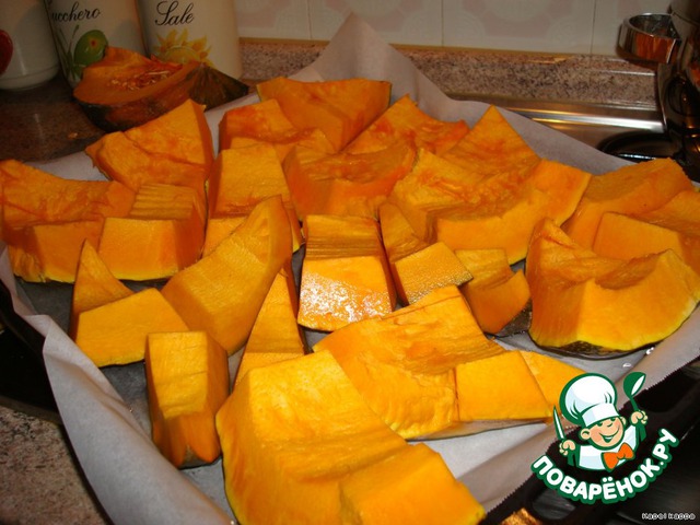Помыть тыкву, разрезать на куски, очистить от семечек,