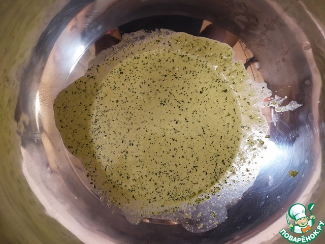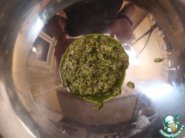 • Далее начинаем постепенно, столовыми ложками, добавлять оливковое масло и продолжаем перемалывать.