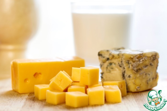 Sic! На самом деле можно взять любые любимые вами сыры, главное, чтобы один дал именно сырный вкус (как чеддер), а другой – пикантную остроту (как рокфор). Подойдет сочетание любого твердого или полутвердого сыра и сыра с плесенью. -