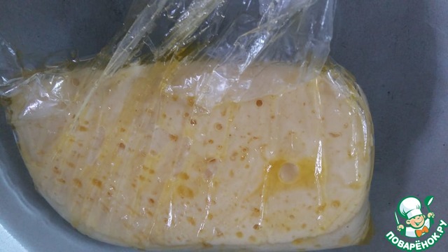 • Достаем сыр из пакета и быстро раскатываем в прямоугольный пласт.