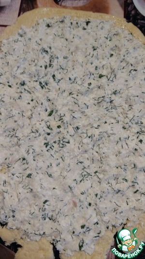 Сверху равномерным слоем на пласт выкладываем начинку.
