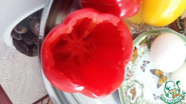 Перец промыть, отрезать верхушку, вынуть семечки.