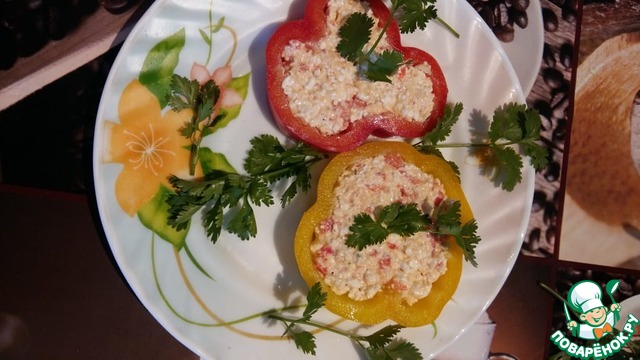 Зафаршировать смесью перцы, поставить в холодильник часа на полтора.