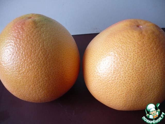 Для приготовления десерта берем два красных грейпфрута, помыть, высушить.
