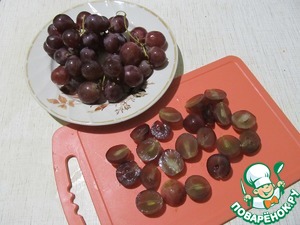 • Виноград порезать пополам. Если косточки мешают, удалить.