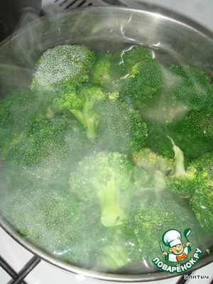 Отвариваем брокколи в подсоленной воде-10 мин.Отбрасываем на дуршлаг.